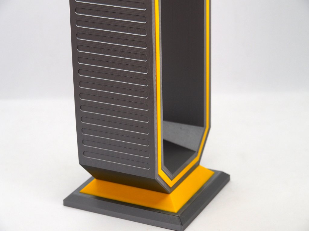 Tento držiak na slúchadlá, vyrobený s precíznou pozornosťou k detailu, je vyrobený z vysoko kvalitných materiálov, ktoré zaisťujú odolnosť a stabilitu. Poskytuje bezpečné miesto na uloženie slúchadiel, ktoré zabraňuje ich zamotaniu alebo poškodeniu. Navyše je vďaka kompaktným rozmerom ideálny pre akýkoľvek pracovný stôl. Nie je to len praktický doplnok, ale aj výrazný kúsok, ktorý odráža vašu lásku ku všetkému futuristickému.